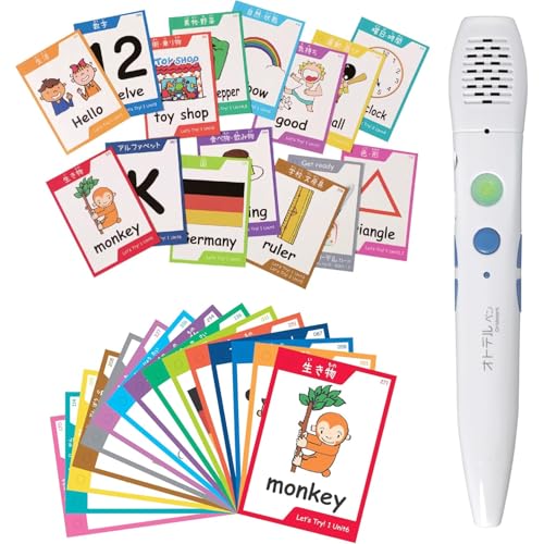 オトデルペンの英語フラッシュカード基本セットは、文部科学省の小学校外国語活動教材「Let’s Try!」に基づき、楽しく学べる内容が満載です。初めての英語に最適で、視覚的に理解を深めるのに役立ちます。
