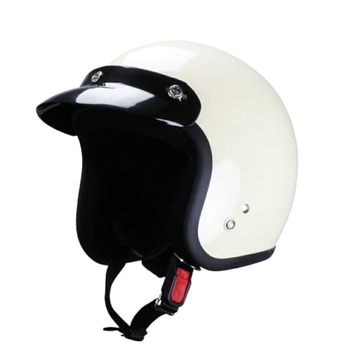GT301ヘルメットは、ノスタルジックなデザインのアイボリー色で、ショートタイプのアメリカンジェットヘルメットです。バイザー付きで、ブラックバイザーがスタイルを引き立てます。