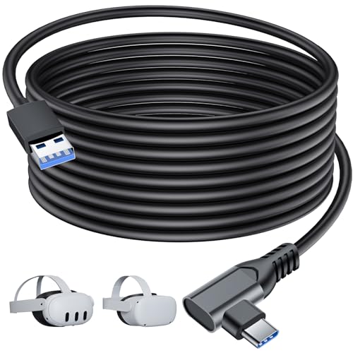 リンクケーブル USB Type C 5M L字型は、Quest 3/2/Pro/Pico4などのVRヘッドセットやPC、スマホと互換性あり。USB3.0高速データ転送に対応し、メタクエスト用やドライブレコーダー給電にも最適。知能チップ搭載で高耐久素材使用。