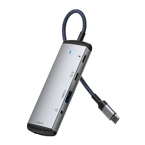 GUROYI 5 in 1 USB C ハブは、Type Cイヤホン変換アダプタ、PD 60W急速充電、USB 3.0/2.0ポート、OTGデータ転送に対応。iPad Pro、MacBook、Windows、Androidデバイスに最適。