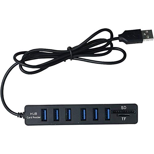 6ポートUSBハブ。SD/microSDカードリーダー機能搭載、USB2.0対応でバスパワー方式。Windows、Mac、Surface Pro、Chromebook、Nintendo Switchに対応。電源不要で高速接続可能。