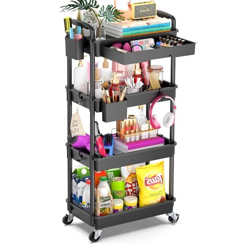 Goovilla 4段キッチンワゴン ブラックは、コンパクトで収納力抜群。頑丈なフレームとスタイリッシュなデザインが特徴。キッチンやリビングでの使用に最適で、移動も簡単。スペースを有効活用できる便利なアイテム。