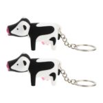 Absプラスチック製の牛フィギュアキーホルダー。LEDライトとサウンド機能付きで、子供や大人向けの記念パーティー用品。2個セット。