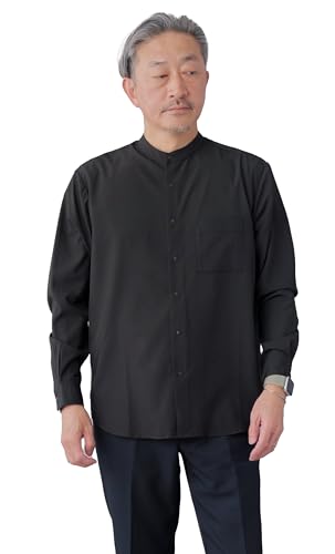 [NEVEREND] バンドカラーシャツ メンズ 長袖 オフィス コーデ スナップボタン とろみ ストレッチ 接触冷感 速乾 吸水 ビジネスカジュアル スタンドカラー