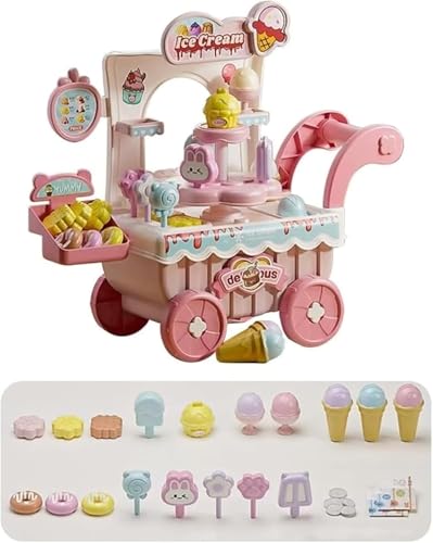 ZHZのおままごとアイスクリーム屋さんは38点セットの豪華モデルです。DIYでアイスクリームを作り、ごっこ遊びが楽しめます。子どもへの誕生日やクリスマスプレゼント、入園祝いに最適です。サイズは44*18*37.5cm、カラーはピンクです。