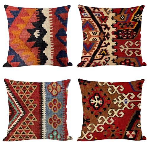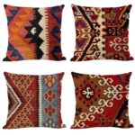 インド製のキリムクッションカバー4枚セット。サイズは45×45cm。幾何学模様が特徴で、アジアンテイストのインテリアに最適。リビングやソファの装飾におすすめのアイテムです。