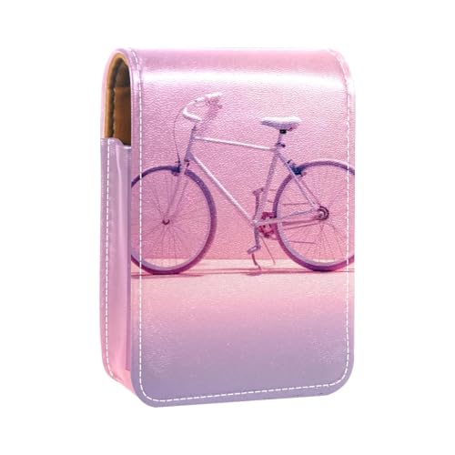 レザー製のミニ口紅ケース。バイクピンクパターンでおしゃれ。ミラー付きで使いやすく、口紅を整理整頓できます。持ち運びに便利なデザイン。