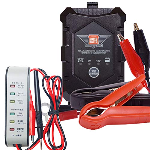 ハーレー専用の充電器とLED式電圧テスターの2点セット。充電器は1.5mの長さで、6V/12V切替可能、トリクル充電機能付き。スーパーナット星乃充電器やオプティメート4デュアルに対応。
