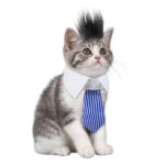ペットウィッグとネクタイの2点セット。小型犬や猫用のコスチュームで、着脱が簡単。サイズ調整可能で、記念撮影やハロウィン、クリスマス、誕生日パーティーにぴったりの可愛いアクセサリーです。