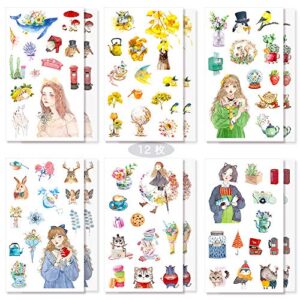 シール 手帳シール かわいい おしゃれ 少女&子供用 和紙シール ノートシール 12枚セット DIY 手作り ステッカー 日記 ダイアリー カレンダー アルバム 家計簿 パッケージバッグ付き (北欧少女)