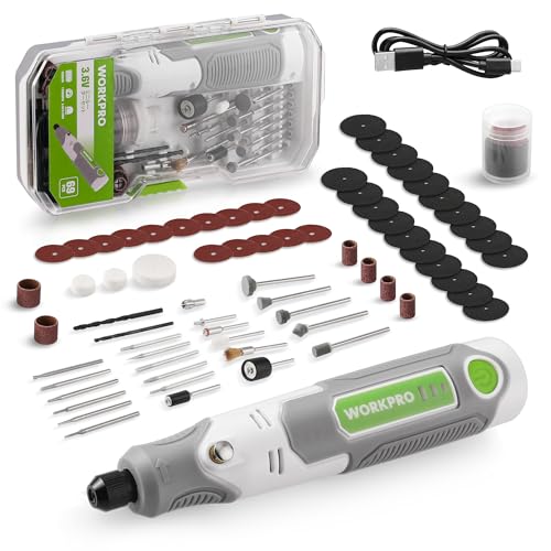 WORKPROミニルーターは3.6V、17000RPMの高速回転を実現。3段変速で、彫刻・穴あけ・研磨など多用途に対応。軽量・コンパクトなコードレス設計。TYPE-C充電式で、日本語取扱説明書付き。