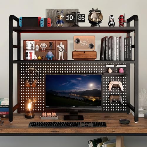 デスク上置き棚は、机上ラックとして多機能に使用可能。2段の組立式デザインで、有孔ボード付き。スチール製で頑丈、小物整理に最適。オフィスや学校の文房具収納に、ブラック/ホワイトの選択肢あり。