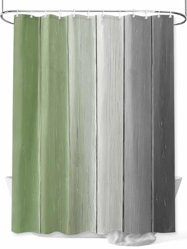 グリーングレーヴィンテージウッドテクスチャのシャワーカーテン。ミニマリストファームハウススタイル。防水、洗える生地でバスルーム装飾に最適。サイズは72×72インチ。