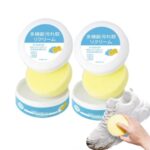 2缶の汚れ取りクリームで、新しい多機能クリーニングが可能。すすぎ不要で白い靴、キャンバス、ラバーソールなどに最適。黄ばみやステインも除去。簡単使用で靴のメンテナンスが手軽に。