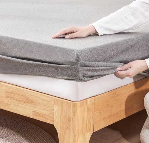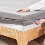 Tametraのボックスシーツは、Tシャツ素材で肌に優しく、毛玉ができにくいのが特徴です。吸水速乾・通気性に優れ、しわにならず全周ゴム付きでフィット感抜群。抗菌防臭加工、マチ約30cm、ダブルサイズ(140×200cm)、グレー色。