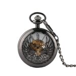 懐中時計 スチームパンク ブラック/ブロンズ 中空フェニックス彫刻 機械式懐中時計 ローマ数字表示 ピンチェーン レトロ時計 コレクターアイテム ブラックの高価買取