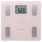 オムロンの体重・体組成計カラダスキャンHBF-214-PKは厚さ28mmの薄型設計。大きな文字表示で見やすく、毎日の健康管理をサポートする便利なアイテムです。