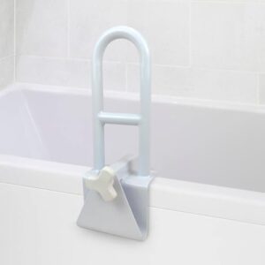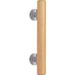 TRUSCOの縦型ミニ手すり、直径35φ、長さ300mm。シルバーライトオーク調のデザインで、インテリアにも馴染みやすいです。安全性とスタイリッシュさを兼ね備えたアイテムです。