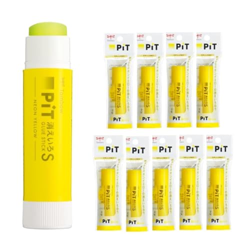トンボ鉛筆スティックのり消え色ピットSネオンイエローは、軸色イエローの10本セットです。消え色機能により、使用後の色が消え、透明になるため、仕上がりが美しく、学校やオフィスでの使用に最適です。
