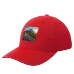 子供用カーブバイザーベースボールキャップ。山々の自然を感じるデザイン。紫外線対策、軽量で通気性の良い綿素材。男女兼用、日常用やアウトドア、スポーツに最適。調整可能なつば広ハット。