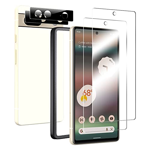 Google Pixel 7用の強化ガラスフィルムセット。2枚の画面保護フィルムと2枚のカメラフィルム付き。指紋認証対応、ガイド枠付きで簡単貼付け。旭硝子素材で気泡防止設計。