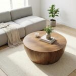 CasaGlajore 29.5インチラウンドコーヒーテーブルは、素朴なデザインの木製ベニヤ付きドラムテーブルです。リビングルームに最適で、MDFを使用し、組み立て済みで使いやすいです。