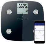 エレコムの体重計HCS-FS01XBKは、体重や体脂肪率、内臓脂肪レベルなどを測定し、スマホと連動。データは手動入力式で、50g単位の精密測定が可能です。バックライト付で視認性も良好です。