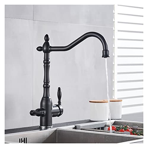 浴室水栓 ゴールデンラグジュアリーキッチン純水シンク蛇口2セラミックハンドル浄水ホット水のミキサータップデッキ キッチン・バス備品 (Color : Black A)の製品情報