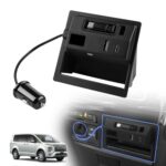 ACE LIGHTINGの新型デリカD5用増設電源ユニット。急速充電対応、ロール式Type-Cケーブル(85cm)、QC3.0 USBポート、電圧計、ライト付。ABS素材でブラック、専用カスタムパーツ。