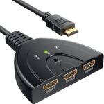 HDMI分配器・切替器で、4Kx2K対応、3入力1出力。電源不要で金メッキコネクタ搭載。1080p/3D対応、PS3、Xbox、液晶テレビ、モニターなどに利用可能。