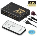 HDMI 切替器、HOUREIHOU HDMI セレクター 5入力1出力 リモコン付き 4Kx2K 1080p 3D映像 USB給電ケーブル 音声出力 Chromecast FireTVStick Xbox One ゲーム機 ブルーレコーダー パソコン PS4 PRO PS5動作確認済み 液晶テレビ TV モニターなどの対応の高価買取