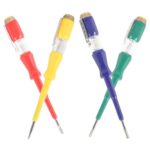DECHOUSの真鍮キャップ付き電気テストペンとマイナスドライバー4本セット。活線検知可能なコンパクト回路テスターで、携帯に便利。ランダムカラーでスタイリッシュなデザイン。