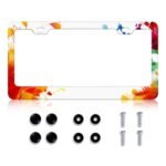 / カラフルな抽象ペイントナンバープレートフレーム – スプラッターペイントパターンナンバープレートホルダー、防錆自動車ステンレススチールパーツナンバープレートカバー装飾 標準米国12×6インチ