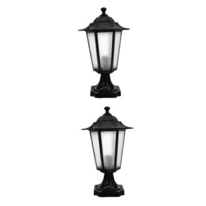 LIFKICH 2個 ライト 外 庭の柱のライト 庭の街灯柱 ガーデンランプ ポーチピラー 電球置き場 門柱ランプ 門扉用ピラー 器具 ピラー 金属 Black