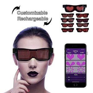 LEDサングラス, LEDメガネ ブルートゥースLEDパーティーメガネカスタマイズ可能なLEDメガネUSB充電式9モードワイヤレス点滅LEDディスプレイ、フェスティバル用グロー眼鏡レイヴパーティー