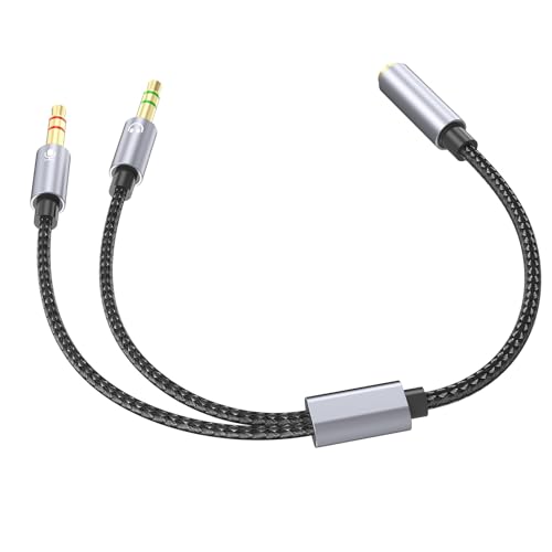 Uqezagpa 3.5mmサウンドとマイクスプリッターケーブルは、編組アダプターメスからオス2個の仕様で、PCやゲーム用ヘッドセットに対応。高品質な音声とマイク入力を提供します。