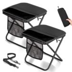 超軽量且つコンパクトな折りたたみ椅子。耐荷重150kgで、ショルダー付き。収納時・展開時にサイドポケット使用可。サイズ:28*23*26cm。ハイキングや釣りに最適。日本語説明書付。