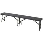 ガーデンマスターの折りたたみガーデンベンチは、幅183cm、奥行28cm、高さ43.5cmのサイズで、ウィッカー調のデザインが特徴です。ダークブラウンの色合いで、お庭やベランダ、テラスやバルコニーに最適です。