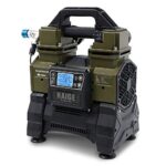 HAIGEのコンプレッサーHG-DC5090Mは、静音設計で100V AC電源とバッテリー式のコードレスモデルです。タンクレスで軽量、ブラシレス・オイルレス仕様で、最大圧力は0.9MPaです。