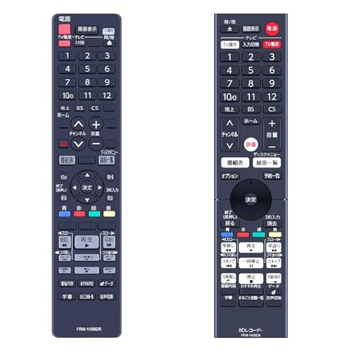 FRM-106BDRはFUNAI製ブルーレイレコーダーFBR-HT2050、FBR-HW2050、FBR-HT3050用のリモコンです。部品番号はURMT57XYX002で、操作性に優れたデザインが特徴です。