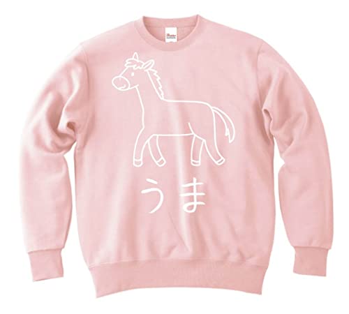 サモエスキーのうま馬イラストが特徴的なライトピンクのスウェットトレーナー。XLサイズで、おもしろデザインが魅力。カジュアルなスタイルにぴったりの一着です。