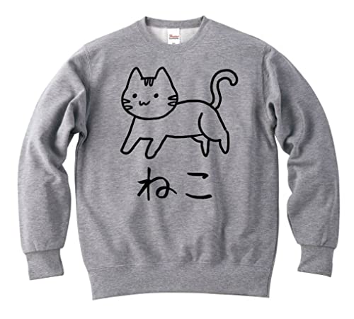 サモエスキーの猫イラスト入りスウェットトレーナー。グレーのLサイズは、かわいい猫デザインでおもしろさ満点。柔らかい素材で着心地抜群の日常使いにぴったりです。