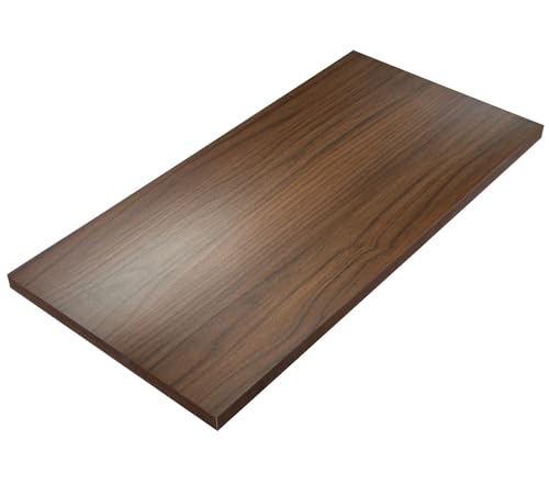 ブラウン色のオーダー棚板。厚み18mmで、幅と奥行の合計が1101~1500mmまで1mm単位でオーダー可能。ダボ無しの設計で自由にカスタマイズできます。