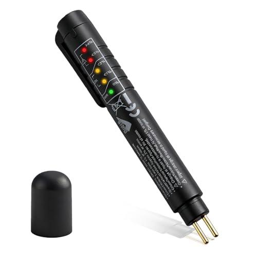 ブレーキフルードリキッドテスターペンは、DOT 3、DOT 4、DOT 5.1に対応し、5つのLEDインジケーターで水分量を簡単に測定できる車用診断ツールです。
