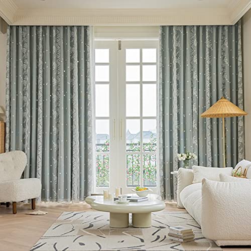 姫系の可愛いデザインの遮光・断熱・保温カーテン。グリーンの刺繍が施された二重カーテンで、洗濯可能。おしゃれでキラキラのタッセル付き、間仕切りにも最適。サイズは110×120cm、オーダー可能。