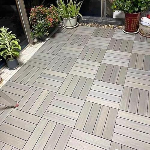 ELzEyの屋外連動デッキタイルはポーチやバルコニー、玄関に最適な10枚セット(グレー)。耐候性に優れ、簡単に組み合わせ可能で、滑り止め機能も備えています。