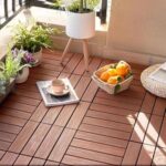 ELzEy 6枚の木とプラスチックの複合連動床タイル、カット可能な正方形のスナップデッキタイル、庭、バルコニー用の防水マット(Mahogany Color)の高価買取ITEM