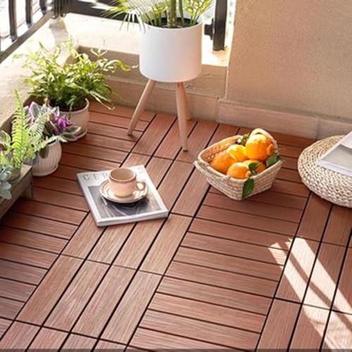 ELzEy 6枚の木とプラスチックの複合連動床タイル、カット可能な正方形のスナップデッキタイル、庭、バルコニー用の防水マット(Mahogany Color)の製品情報