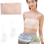 JUJUGOのチューブトップは、キッズ向けのパッド付きスポーツトップです。透明ストラップ付きでずれにくく、通学やダンス、体育に最適。綿100%で吸汗性が高く、肌触り良好。ジュニアインナーとしてもおすすめ。ベージュ色、大人の成長期に合わせたデザインです。