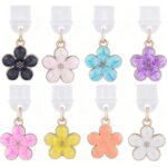 / SUNNYCLUE 8個 フラワーダストプラグチャーム USB C ダストプラグチャーム バルク キュート エナメル パープル ホワイト イエロー 桜 花柄 春 ペンダント 電話 イヤホン 携帯電話 電子書籍リーダー プロテクター 女性 大人